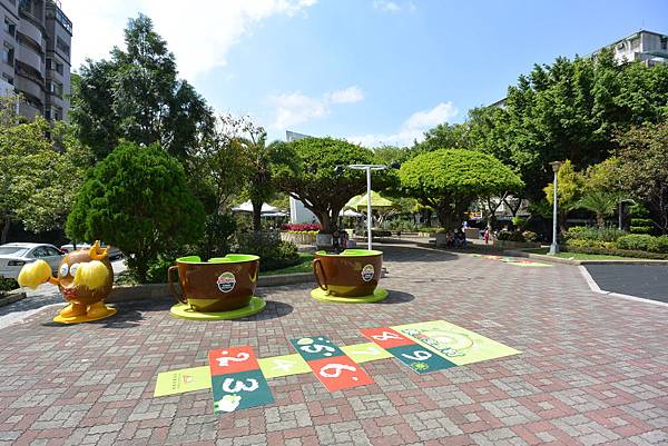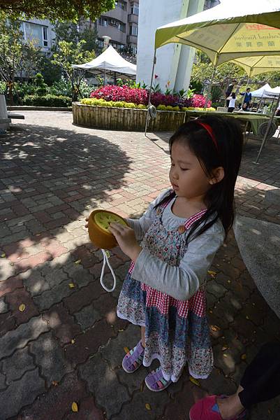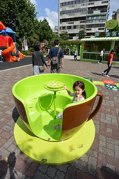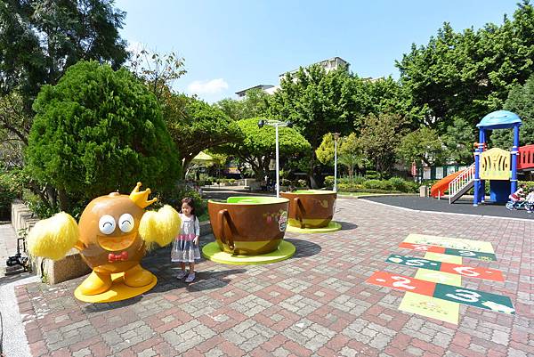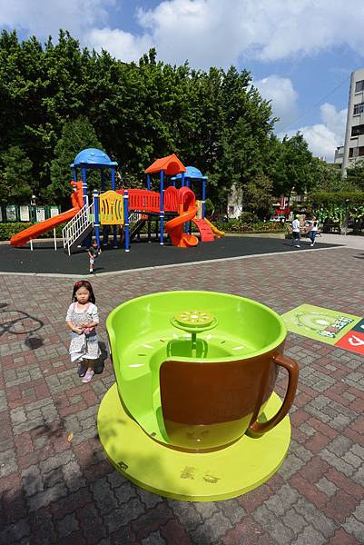Anyway,直至我們吃完蕎麥麵回去取車時這活動都還沒開始,所以我們只是讓小鴨在公園裡跑跑、溜溜滑梯,也順便在活動用的巨型咖啡杯中留了影,還意外地打卡獲贈奇異果造型的沐浴海綿!這天藍天白雲又吹著宜人的風,好不愉快!